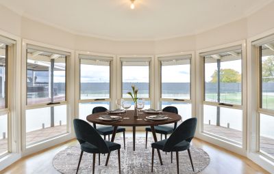Featuring three generously proportioned bedrooms plus a dedicated study, this home effortlessly accommodates families seeking space, functionality, and sophisticated style. The luxurious master suite, complete with its private ensuite, offers an idyllic retreat, while elegant bay windows, expansive verandahs, and beautiful floating timber floors add timeless charm and warmth throughout.