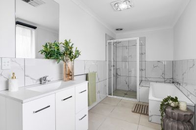 Rendered four bedroom, two bathroom plus study double brick home is sure to appease your whole family, located in the thriving town of Merbein. You'll be impressed from the moment you pull up to the driveway, with no work required inside or out. Genuine four bedrooms; master with walk-in-robe and en-suite, plus all three other bedrooms with BIR's. Kitchen with 900mm electric cooktop & oven, walk-in-pantry, dishwasher and ample bench and storage space. Year round comfort is ensured with ducted reverse cycle heating & cooling. Spacious lounge room flows to the rest of the home. Tiled throughout, downlights, study, central bathroom, neutral colour tones used & light filled rooms plus large laundry with linen and storage.