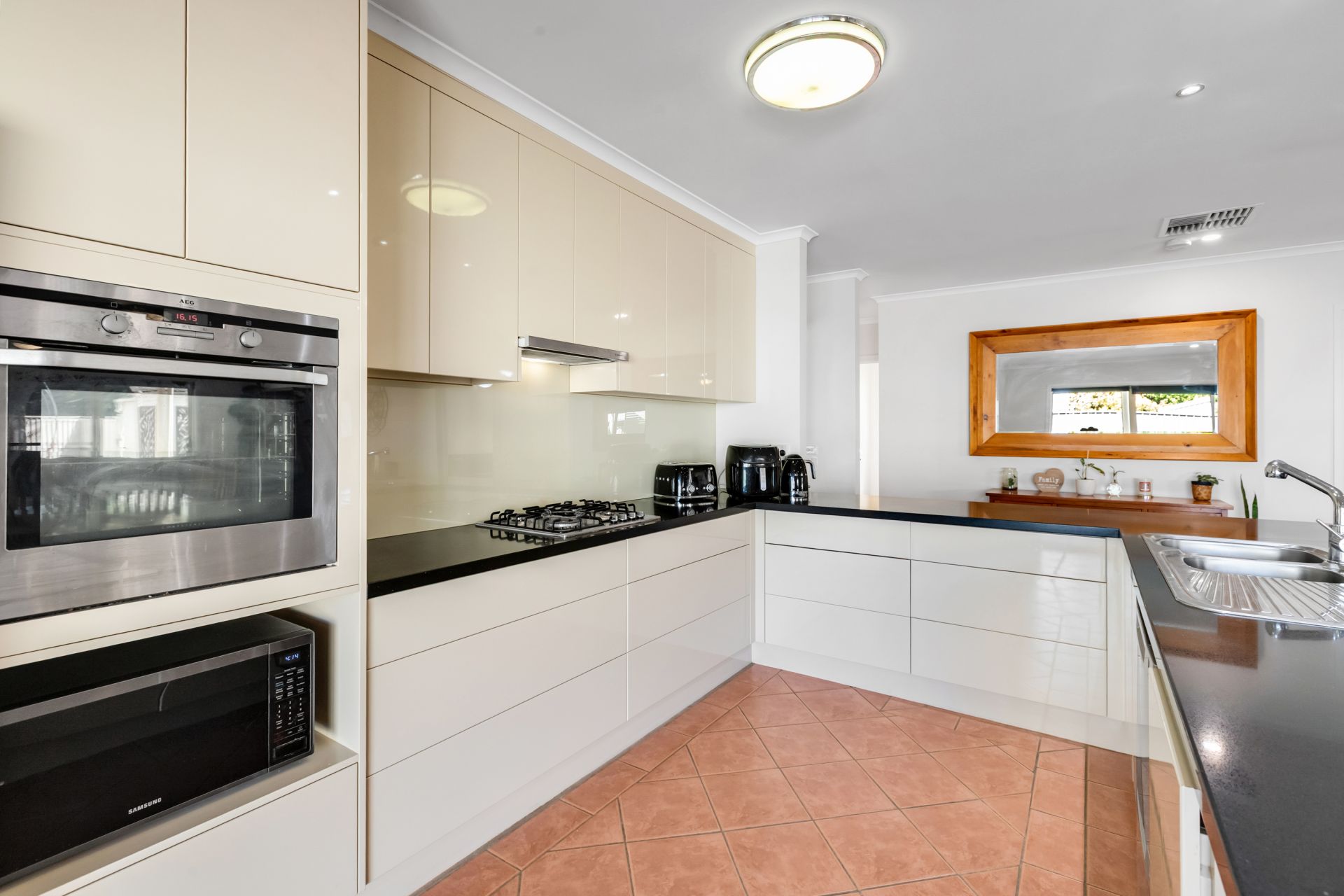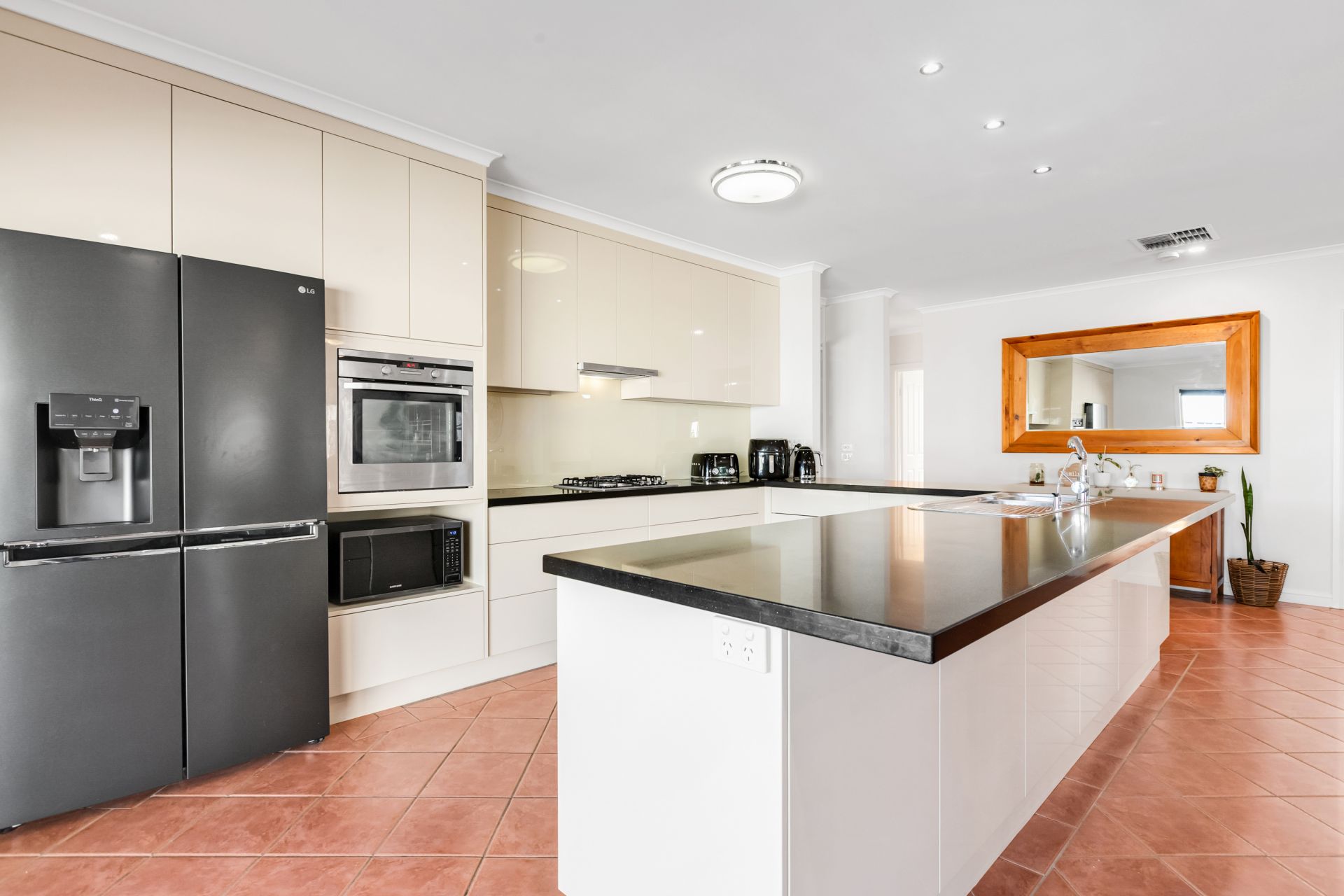 The stylish mirror-tone kitchen is a true highlight, featuring stone bench tops with plenty of preparation area for the cooking enthusiast, twin drawer dishwasher, microwave cavity, pantry. The home also offers ducted vacuuming for ease and convenience.