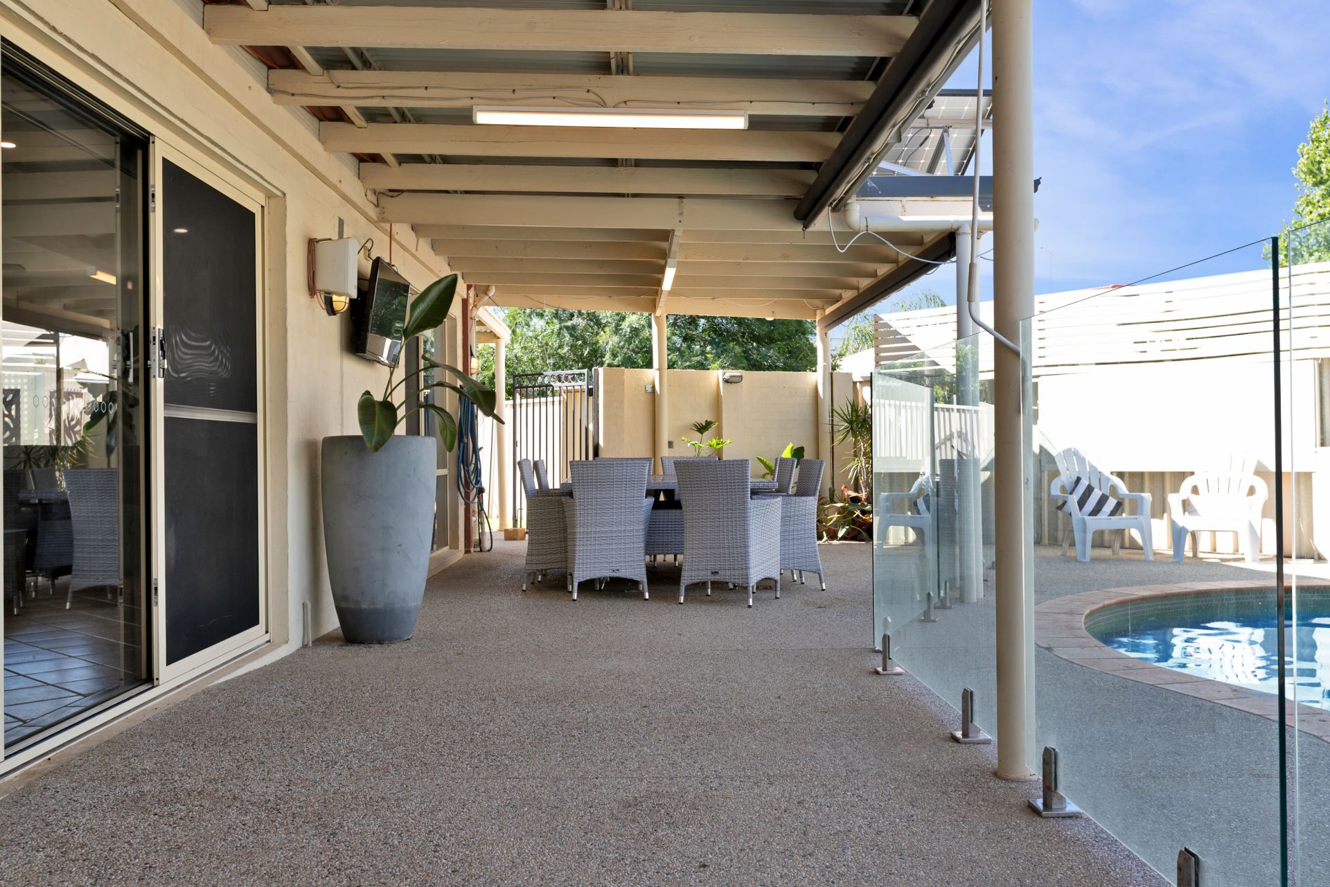 Stay comfortable through every season with a gas fireplace in the lounge and gas heater in the family area, evaporative cooling, 2 x spit systems. Energy efficiency is ensured with the solar power system.