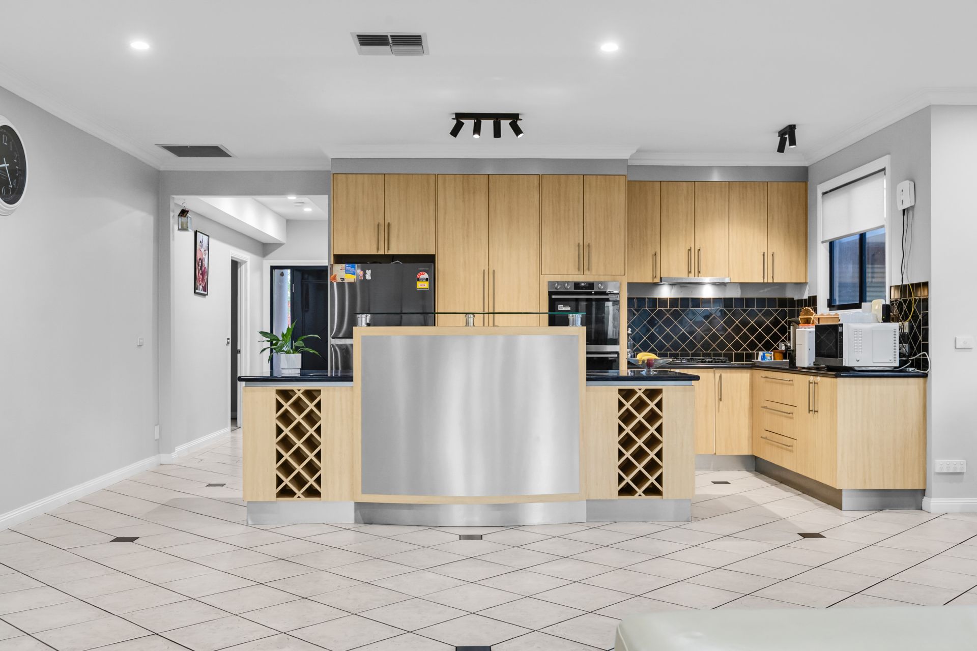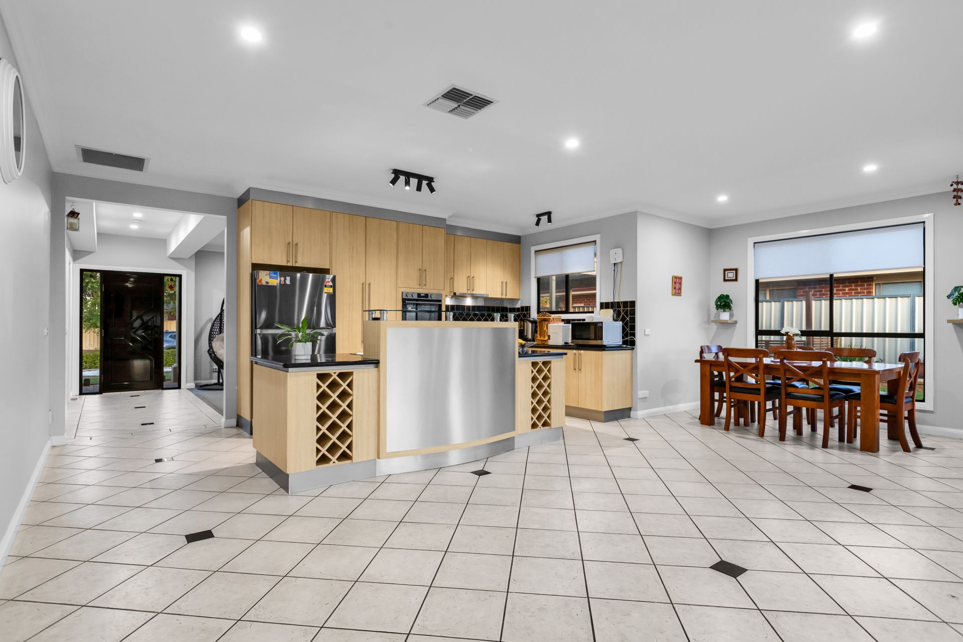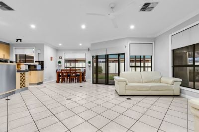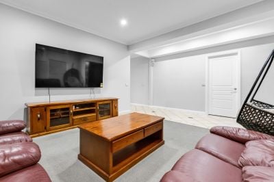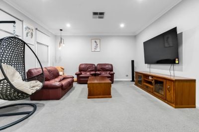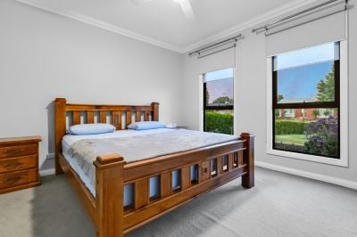 Its striking façade, manicured front gardens and feature landscaping create strong street appeal, while secure parking is an added convenience. Inside, the light-filled layout showcases quality finishes throughout, including a welcoming living zone, a well-equipped kitchen and a seamless connection to the home's main living and dining areas.