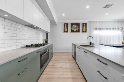 The beautifully appointed kitchen offers stone benchtops, a walk-in pantry, quality dishwasher, and a 900mm gas oven and stove, making it a standout space for the family cook.