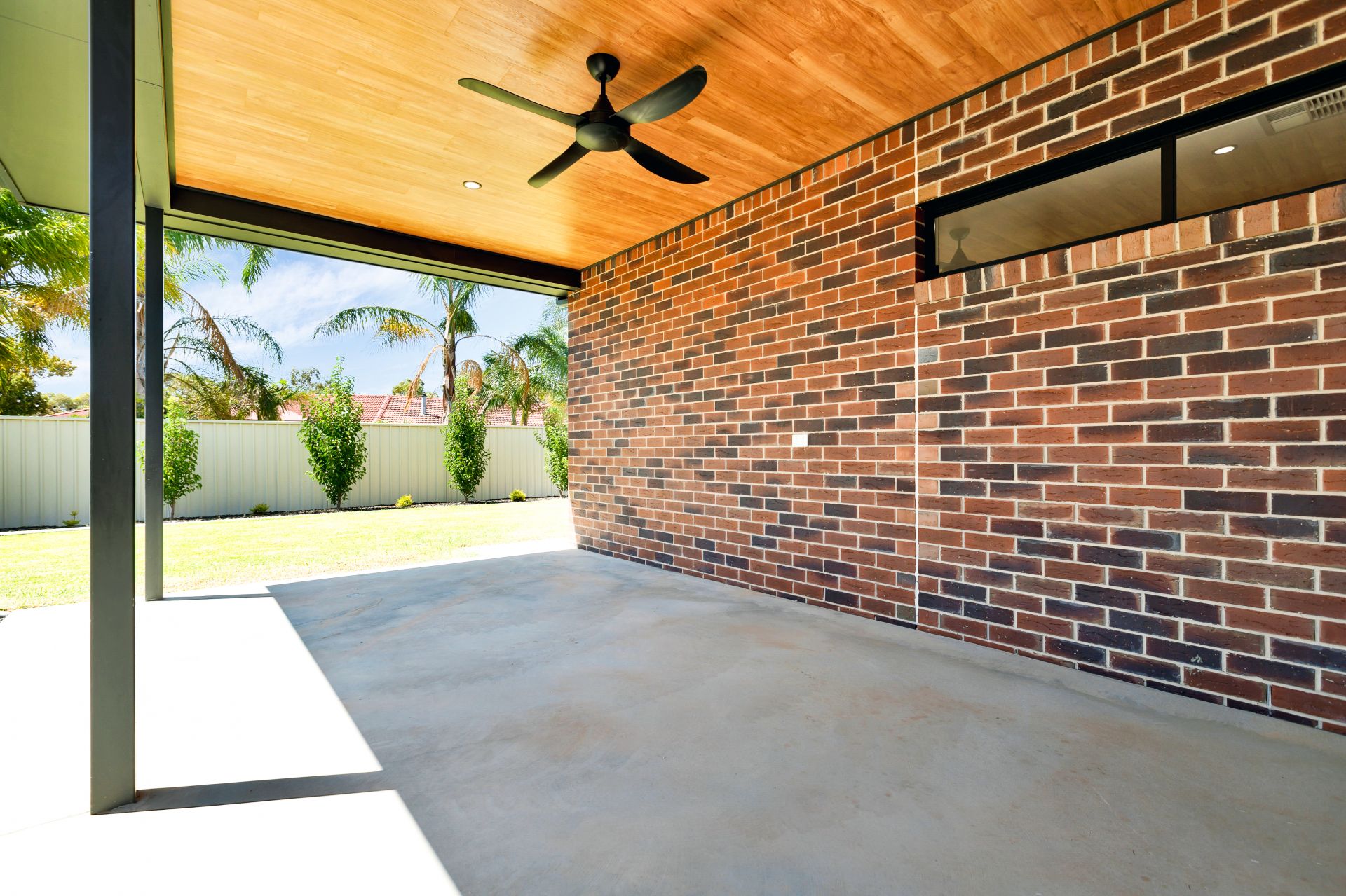 Outdoors, the home continues to impress with a well-appointed entertaining area complete with ceiling fan, television points and downlights, it is all under the main roof line so could easily be converted into another enclosed living area.