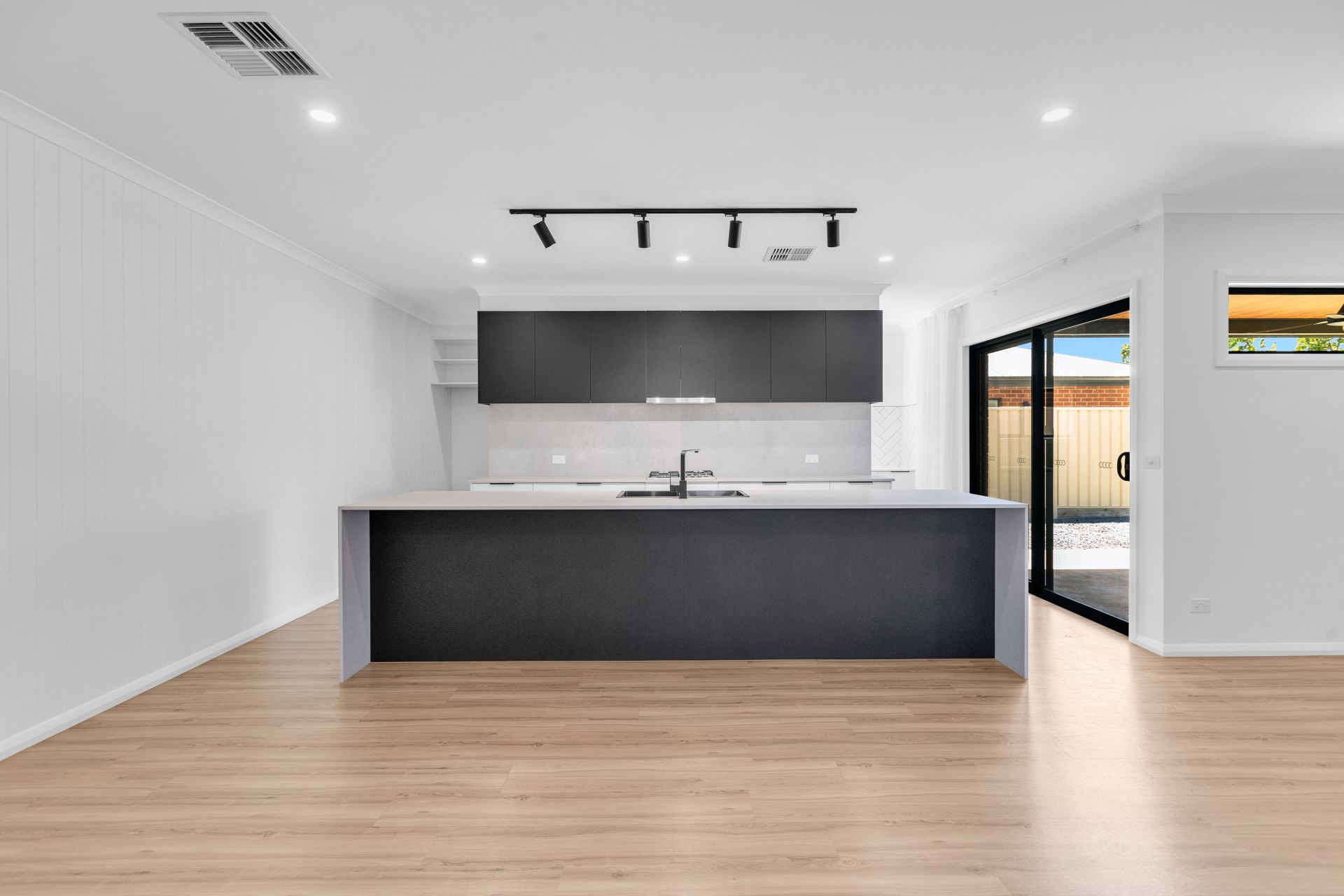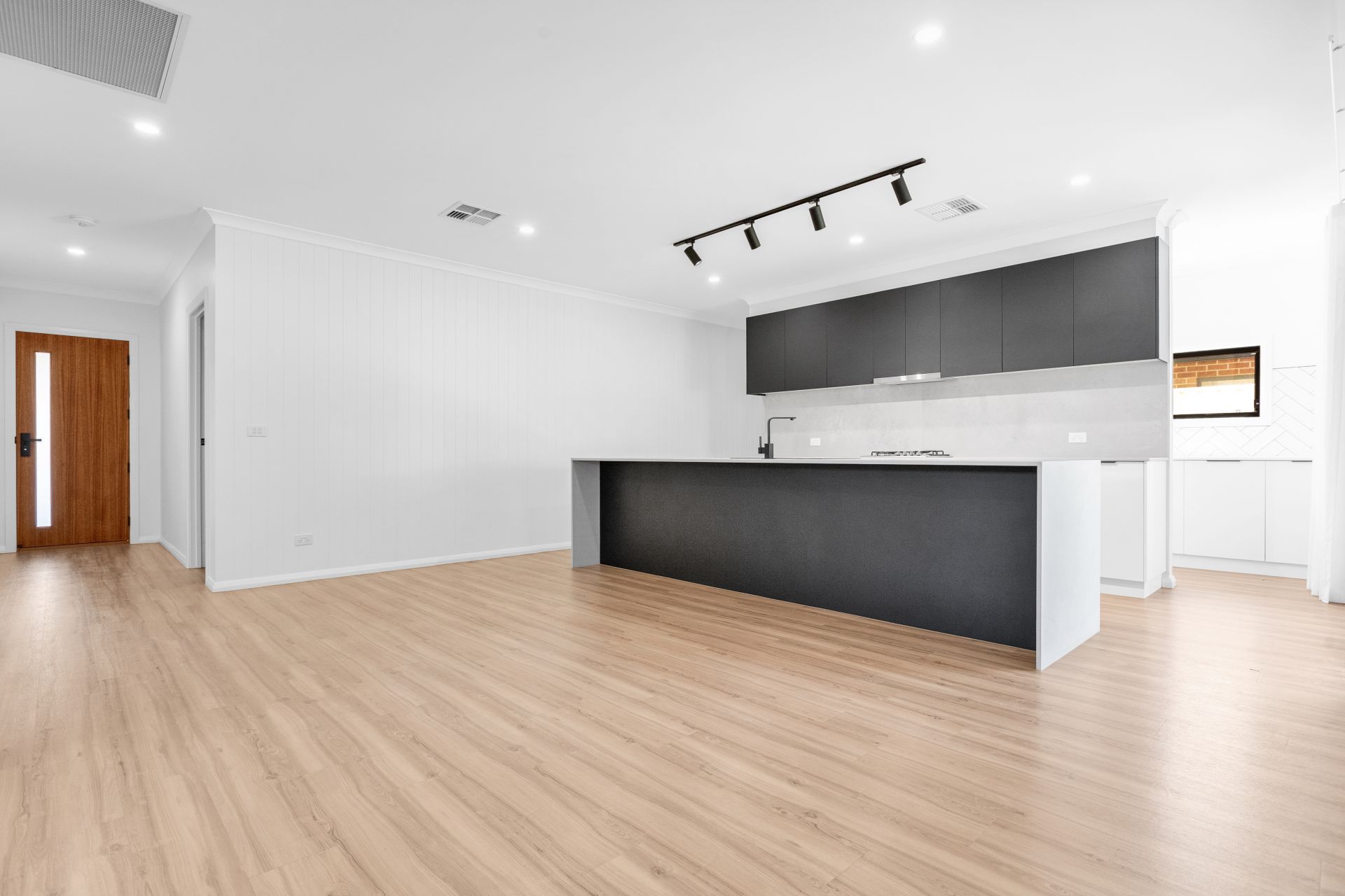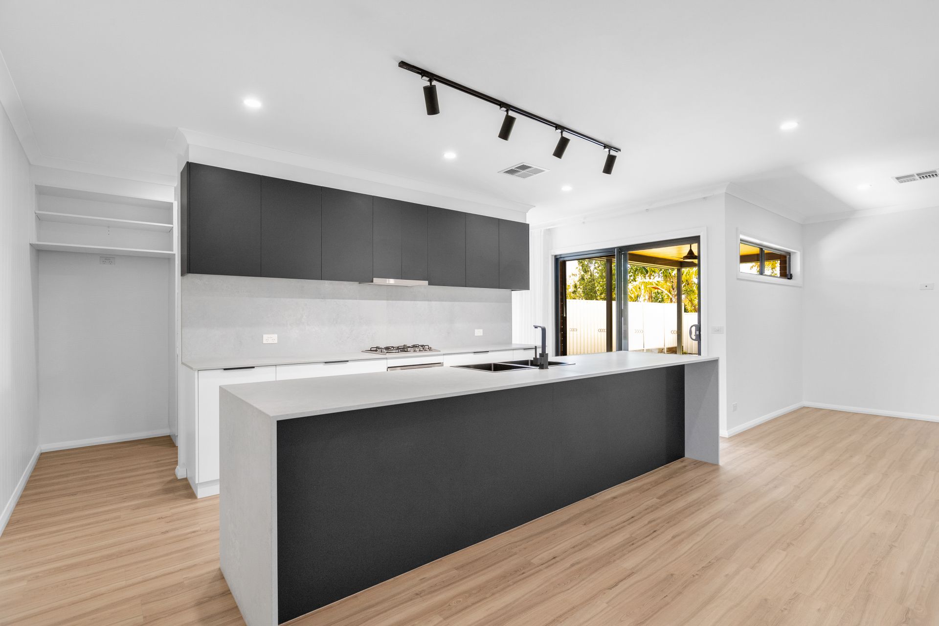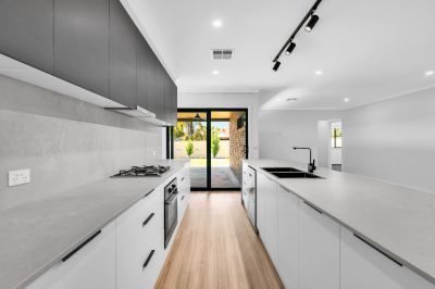 From the welcoming entry, the home opens into a spacious open plan lounge, dining and kitchen area designed for everyday living and effortless entertaining. The galley style kitchen is a standout, featuring stone splashbacks, stone benchtop. It is well equipped with gas stove, dishwasher and walk-in pantry, that provides excellent storage and functionality.