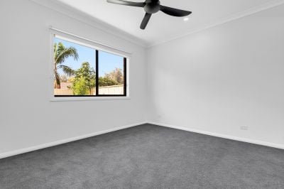 Three well-proportioned bedrooms, all fitted with ceiling fans, the master bedroom is complemented by a walk-in robe and private ensuite, while the remaining two bedrooms feature built-in robes. An additional study with a built-in desk and cupboards offers the ideal space for working from home or extra storage.
