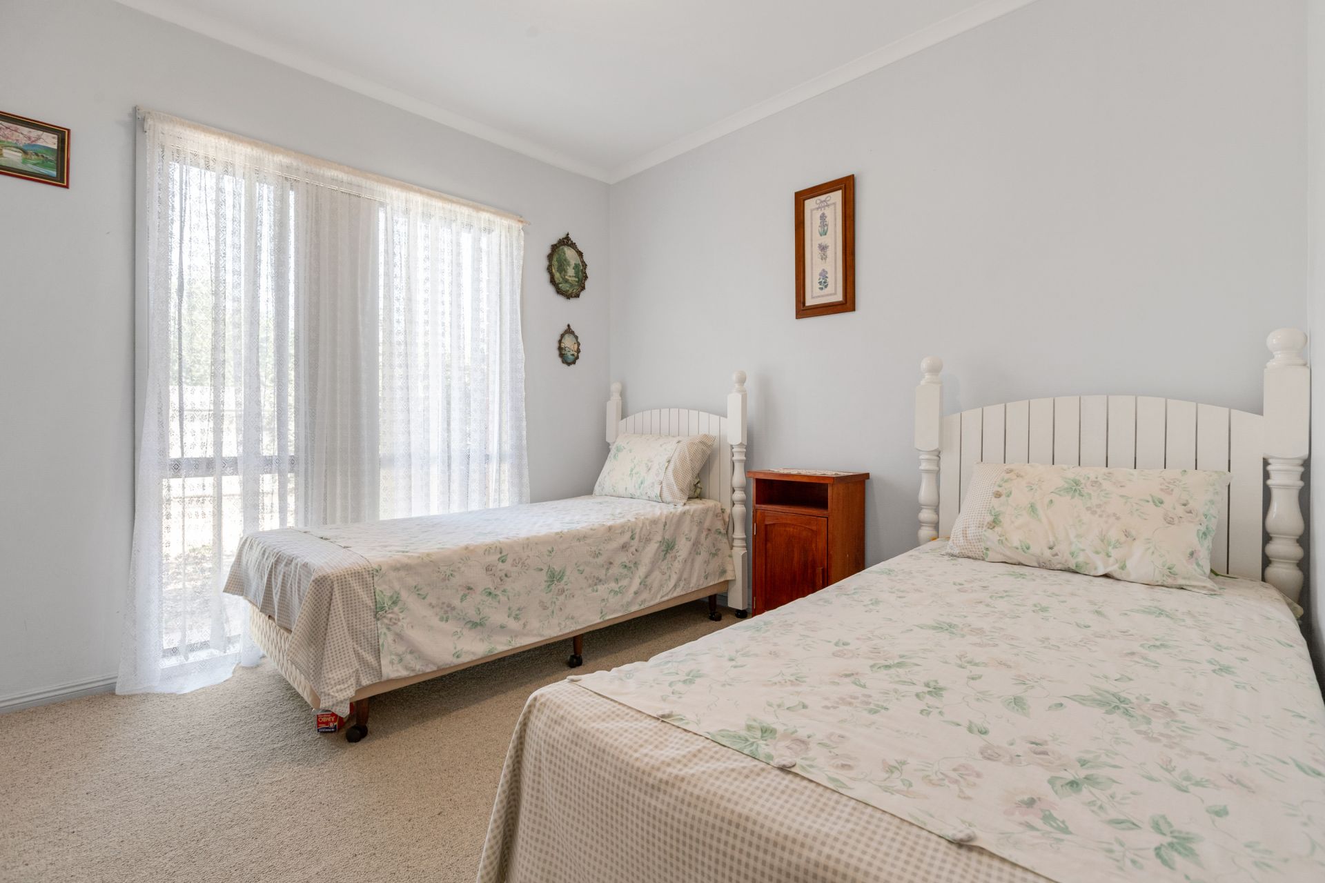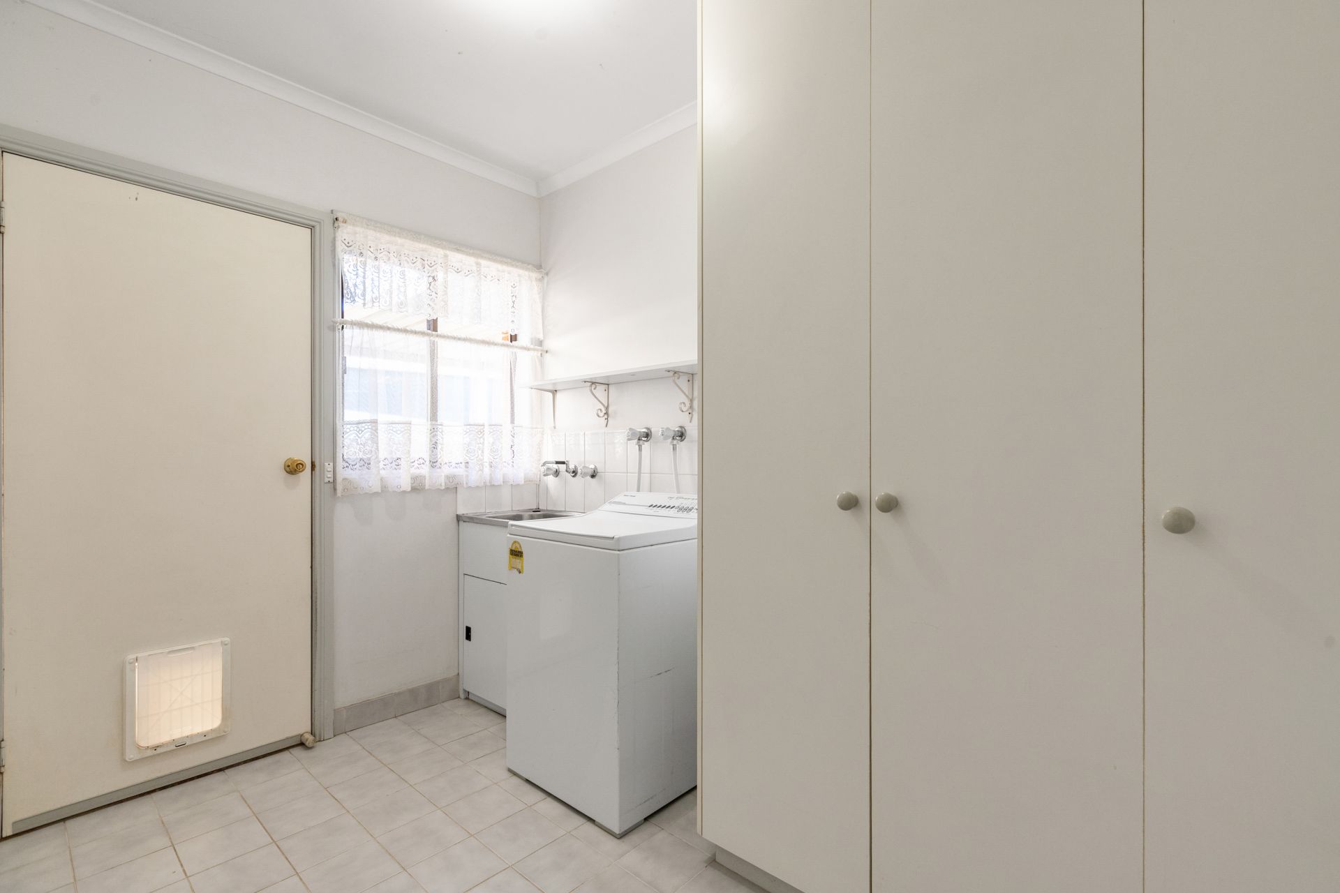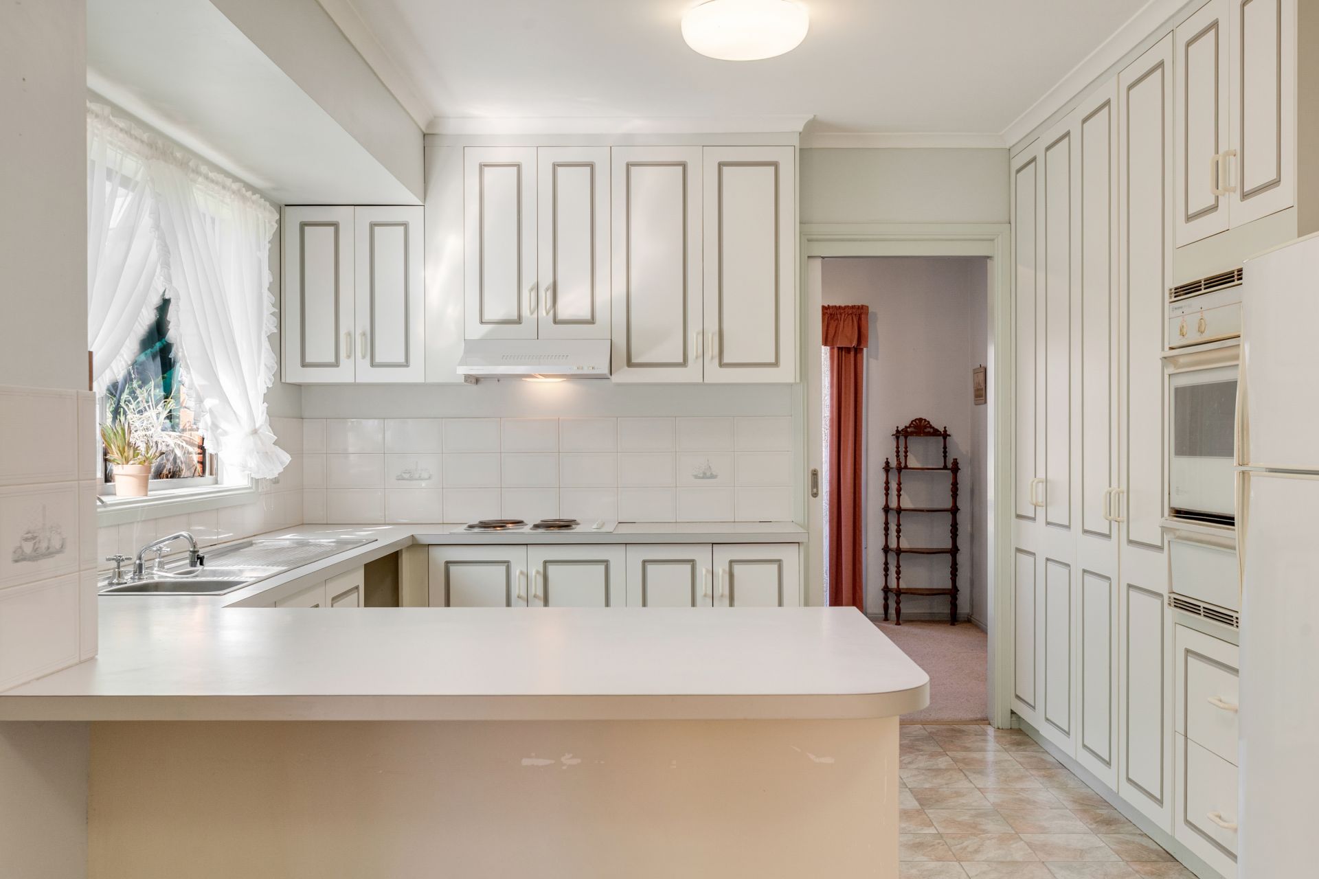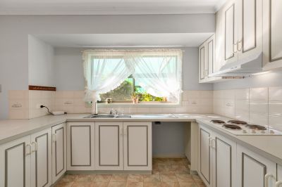 Comfort is covered year-round with evaporative cooling and gas heating. The kitchen includes a wall oven and electric cooktop, providing a functional setup for daily meals.
